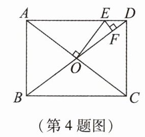 4. [2024·浙江绍兴期末]如图,矩形ABCD的对角线AC,BD交于点O,AB = 6,BC = 8,过点O作OE⊥AC,交AD于点E,过点E作EF⊥BD,垂足为F,则OE + EF的值为________。