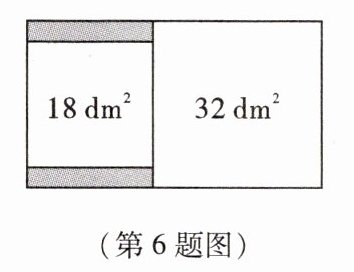 6(PISA试题)[2023·浙江温州期中]有一块长方形木板,木工采用如图的方式,在木板上截出两个面积分别为18 dm²和32 dm²的正方形木板,则剩余木料(阴影部分)的面积为________dm².