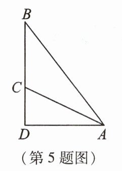 5 如图,斜面AC的坡比为1∶2,AC = $3\sqrt{5}$米,坡顶有一旗杆BC,旗杆顶端点B与点A有一条彩带相连. 若AB = 10米,则旗杆BC的高度为( )