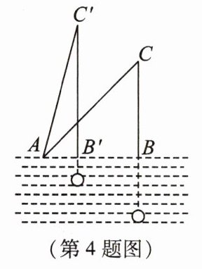 4 [2023·浙江杭州上城区期中]如图,已知钓鱼竿AC的长为6 m,露在水面上的鱼线BC的长为$3\sqrt{2}$ m,某钓者想看看鱼钩的情况,把鱼竿AC转动到AC'的位置,此时露在水面上的鱼线B'C'的长为$\sqrt{34}$ m,则BB'的长为( )