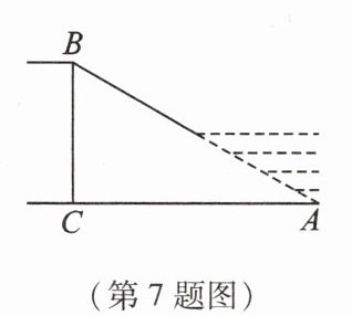7 链教材P19课内练习第1题改编 如图,河坝横断面迎水坡AB的坡比是1∶$\sqrt{3}$(坡比是坡面的铅直高度BC与水平宽度AC之比),水平宽度AC = $3\sqrt{3}$米,则坡面AB的长度是________米.