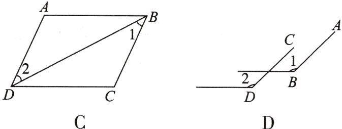 ∴不能得到AB//CD,此选项不符合题意. 故选A.