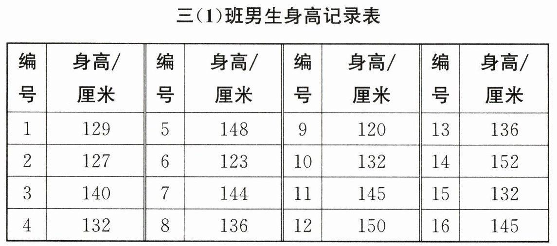3. 下面是某小学三年级两个班男生身高的记录表。