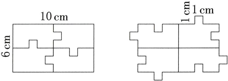 10.(台州玉环市)如图,四片小拼图合并在一起是一个长10 cm、宽6 cm的长方形。四片小拼图经过平移后拼成新图形,新图形的面积是( )cm²;原来长方形与新图形的周长相差( )cm。