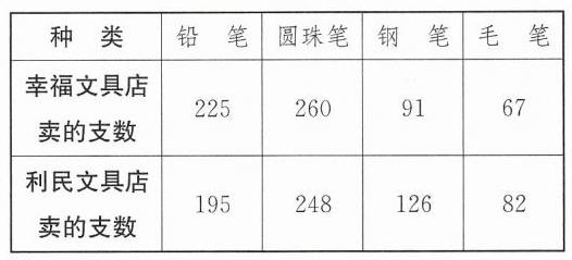 (2)利民文具店再卖多少支铅笔就和幸福文具店卖的铅笔同样多?(3分)