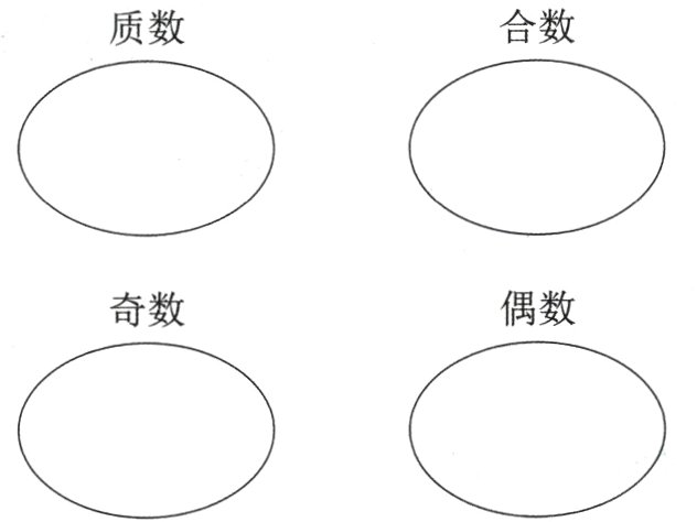 2. 下面各数中哪些是质数?哪些是合数?哪些是奇数?哪些是偶数?分别填入相应的圈里。(4分)