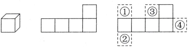 6. (湖州长兴县)下图中,第一幅图是一个正方体,正方体展开有6个面,第二幅图给出了其中的5个面。请从第三幅图①②③④4个面中选一个,形成正方体展开图,这个面是( )。