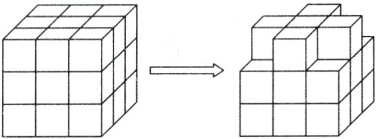 5. 如图,拿走四个小正方体后,下面说法正确的是( )。