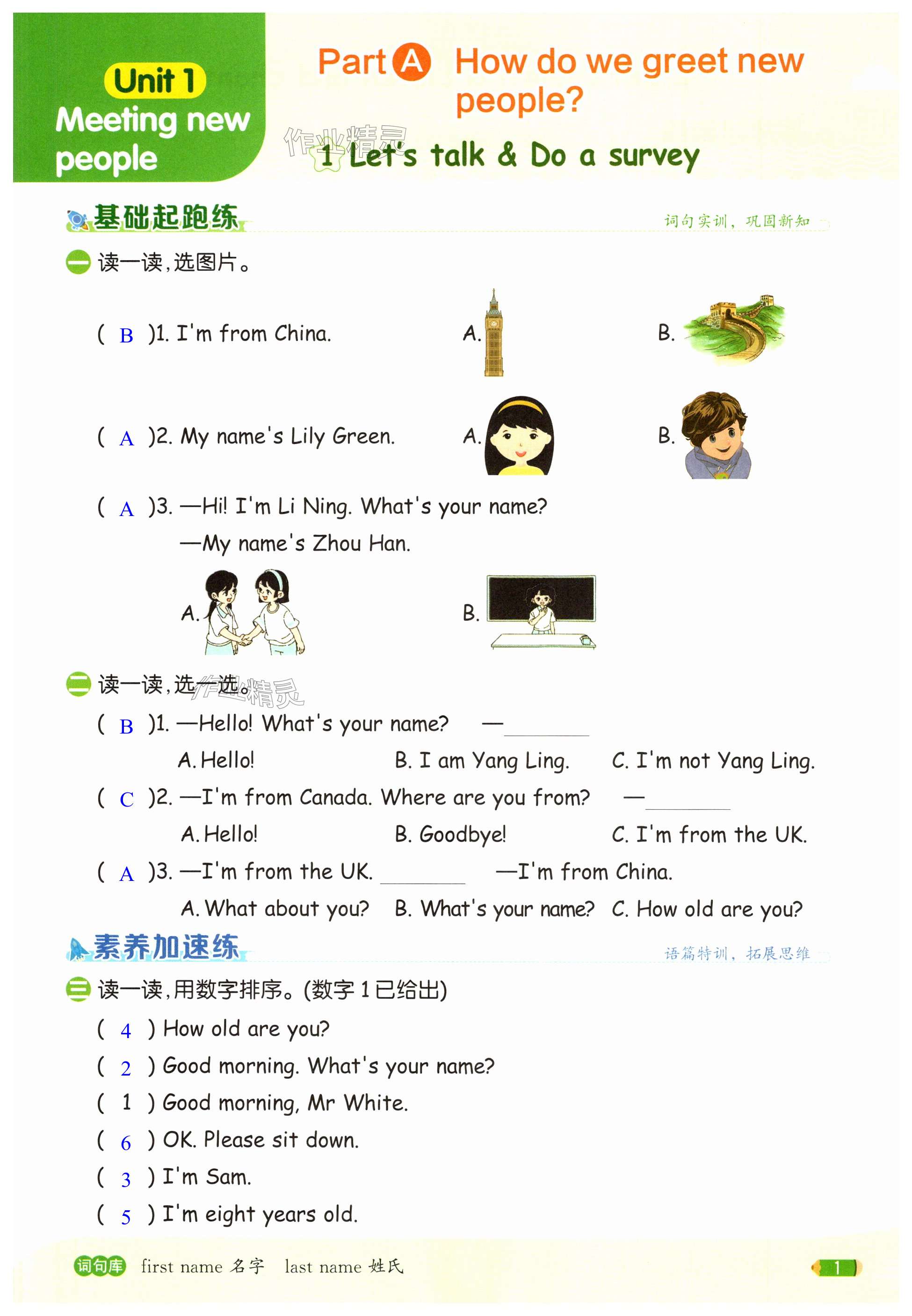 注:目前有些书本章节名称可能整理的还不是很完善,但都是按照顺序排列的,请同学们按照顺序仔细查找。练习册 2025年奔跑吧少年三年级英语下册人教版 答案主要是用来给同学们做完题方便对答案用的,请勿直接抄袭。