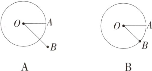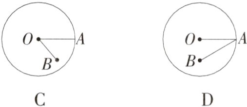 9. 已知⊙O的半径OA长为$\sqrt{2}$,若$OB = \sqrt{3}$,则可以得到的正确图形可能是( )