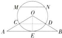 17. 推理能力 如图,已知△AOB中,OA = OB,∠AOB = 120°,以点O为圆心,1/2OA长为半径作圆分别交OA,OB于点C,D,弦MN//AB.