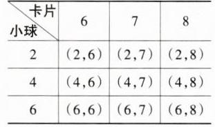 共有9种等可能的情况,分别是(2,6),(2,7),(2,8),(4,6),(4,7),(4,8),(6,6),(6,7),(6,8);