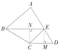 $\therefore\frac{S_{\triangle BCE}}{S_{\triangle ECD}}=\frac{\frac{1}{2}BE\cdot CN}{\frac{1}{2}CD\cdot EM}=\frac{BE}{CD}=\sqrt{3}$,
