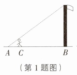 1. 如图,为估算学校的旗杆的高度,身高1.6 m的小红同学沿着旗杆在地面的影子AB由A向B走去,当她走到点C处时,她的影子的顶端正好与旗杆的影子的顶端重合,此时测得AC=2 m,BC=8 m,则旗杆的高度是( )