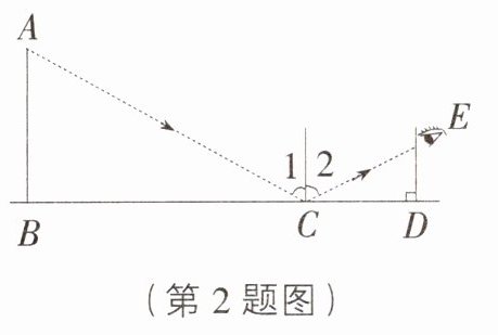 2. 如图,为了测量塔AB的高度,数学兴趣小组根据光的反射定理(图中∠1=∠2),把一面镜子放在点C处,然后观测者沿着直线BC后退到点D.这时恰好在镜子里看到塔顶A,此时量得CD=4 m,BD=94 m,观测者目高ED=1.6 m,则塔AB的高度为( )
