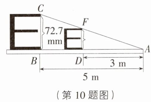 10. [陕西咸阳秦都区月考]如图,小明探究课本“综合与实践”板块“制作视力表”的相关内容:当测试距离为5 m时,标准视力表中最大的“E”字高度为72.7 mm,当测试距离为3 m时,最大的“E”字高度为( )