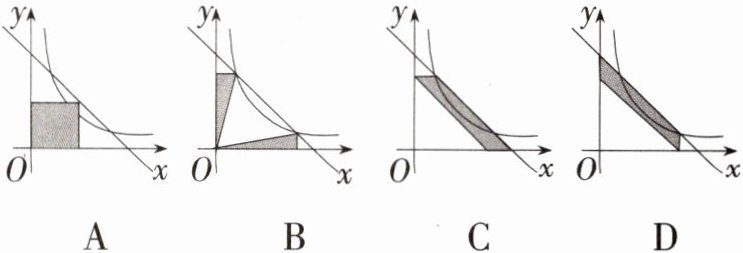 A [解析]由反比例函数中系数$k$的几何意义可知,选项A中阴影部分的面积大于$3$,选项B,C,D中的阴影部分的面积都等于$3$.