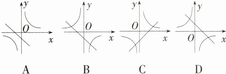 12. 若二次函数$y = ax^{2}+bx + c(a\neq0)$的图象如图所示,则一次函数$y = ax + b$与反比例函数$y = -\frac{c}{x}$在同一个坐标系内的大致图象为 ( )