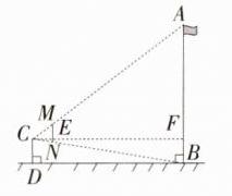 14. 如图,小明到操场测量旗杆$AB$的高度,他手拿一支铅笔$MN$,边观察边移动(铅笔$MN$始终与地面垂直).当小明移动到$D$点时,眼睛$C$与铅笔顶端$M$,旗杆的顶端$A$共线,同时眼睛$C$与它们的底端$N$,$B$也恰好共线.此时测得$DB = 50\ m$,小明的眼睛$C$到铅笔的距离为$0.6\ m$,铅笔$MN$的长为$0.16\ m$,则旗杆$AB$的高度为 ( )