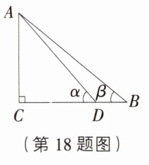 18. [河北石家庄名校内测]如图,在Rt△ABC中,∠C = 90°,D为BC边(除端点外)上的一点,设∠ADC = α,∠B = β.