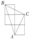 ∵$CB=\sqrt{1^{2}+2^{2}}=\sqrt{5}$,$AC=\sqrt{1^{2}+2^{2}}=\sqrt{5}$,$AB=\sqrt{1^{2}+3^{2}}=\sqrt{10}$,