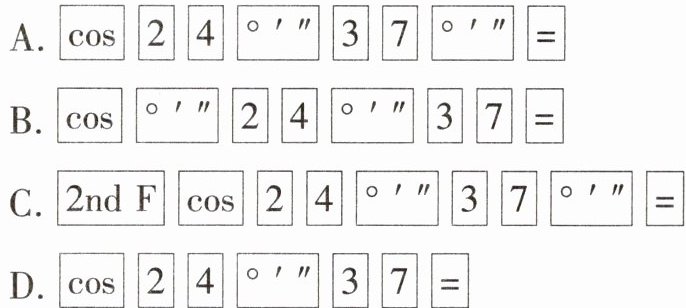 1. 用计算器求$\cos24^{\circ}37'$的值,以下按键顺序正确的是 ( )