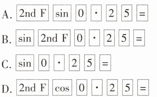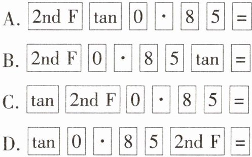 2. 已知$\tan A = 0.85$,用计算器求$\angle A$的大小,下列按键顺序正确的是 ( )