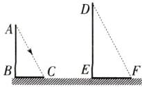 2. 如图,AB和DE是直立在地面上的两根立柱.AB=4 m,某一时刻AB在阳光下的投影BC=3 m.