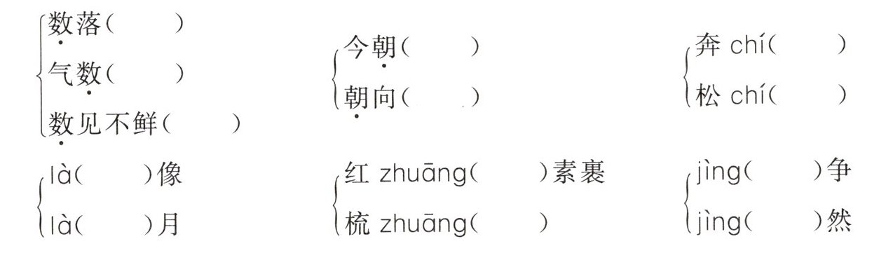 shǔ shù shuò zhāo cháo 驰 弛 蜡 腊 装 妆 竞 竟