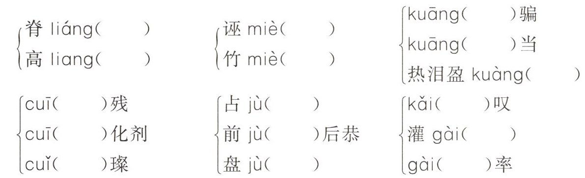 梁 粱 蔑 篾 诓 哐 眶 摧 催 璀 据 倨 踞 慨 溉 概
