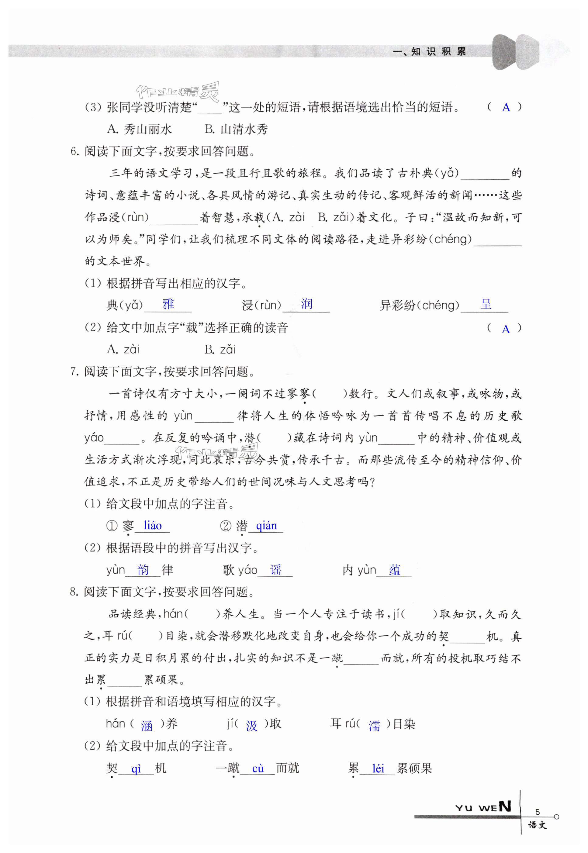 注:目前有些书本章节名称可能整理的还不是很完善,但都是按照顺序排列的,请同学们按照顺序仔细查找。练习册 2025年中考指要语文 答案主要是用来给同学们做完题方便对答案用的,请勿直接抄袭。