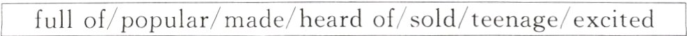 full of/popular/made/heard of/sold/teenage/excited