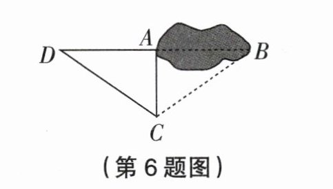 6. 如图,要测量水池的宽AB,可从点A出发在地面上画一条线段AC,使AC⊥AB,再从点C观测,在BA的延长线上测得一点D,使∠ACD = ∠ACB,这时量得AD = 120 m,则水池宽AB的长度是_______m.