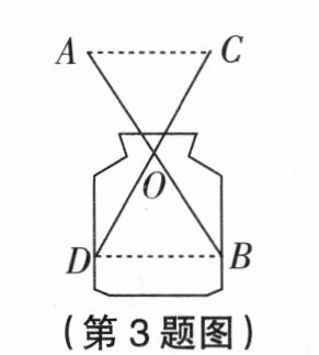 3. 如图,AB,CD表示两根长度相等的铁条. 若O是AB,CD的中点,经测量AC = 15 cm,则容器的内径长是 ( )