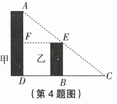 4. 如图,小明站在C处看甲、乙两楼楼顶上的点A和点E,C,E,A三点在同一直线上,点B,C相距20米,点D,C相距40米,乙楼的高BE为15米,小明的身高忽略不计,则甲楼的高AD为 ( )