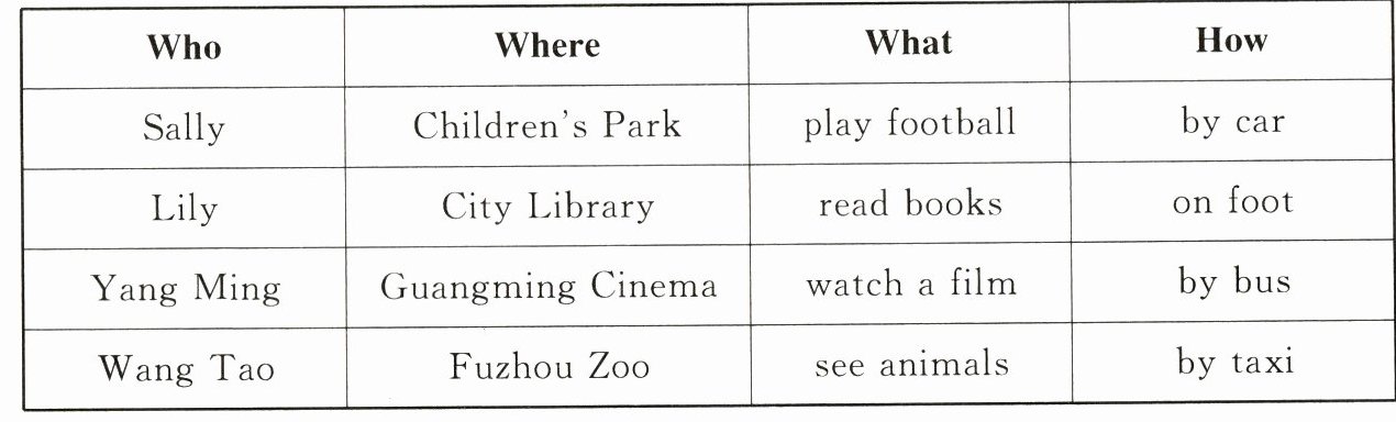 It was a sunny day. My father took my brother and me to the West Lake Park. We went there by bus. We saw big trees and beautiful flowers there. We went to see goldfish,too. There were some goldfish in the lake. I took many photos of them. Then we went boating. It was interesting. We had great fun. We went home by taxi before lunchtime.