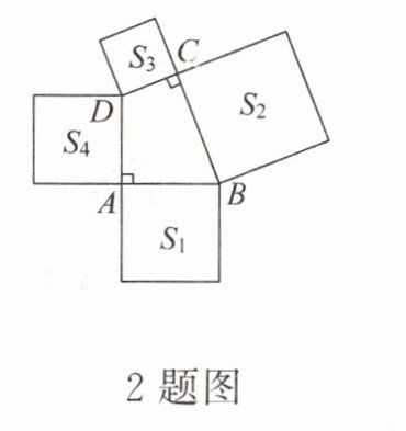 2. 如图,在四边形ABCD中,∠DAB = ∠BCD = 90°,分别以四边形的四条边为边向外作四个正方形,若$S_{1}+S_{4}=100,S_{2}-S_{3}=28$,则$S_{2}=$______.