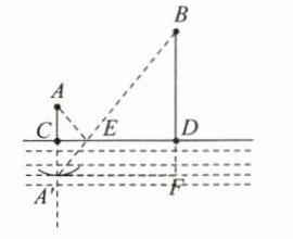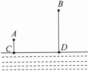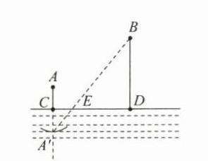 2. 如图,A,B两个村子在笔直河岸的同侧,A,B两村到河岸的距离分别为AC = 2 km,BD = 5 km,CD = 6 km,现在要在河岸CD上建一水厂E向A,B两村输送自来水,要求水厂E到A,B两村的距离之和最短.
