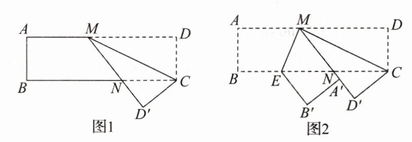 【操作】如图1,在矩形ABCD中,点M在边AD上,将矩形纸片ABCD沿MC所在的直线折叠,使点D落在点D'处,MD'与BC交于点N.