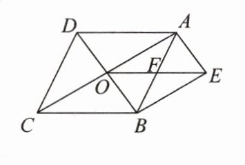 4.(8分·几何直观、推理能力)如图,菱形ABCD的对角线AC,BD相交于点O,BE//AC,AE//BD,OE与AB交于点F.