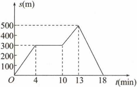 星期日晚饭后,小红从家里出去散步,如图所示,描述了她散步过程中离家的距离s(m)与散步所用的时间t(min)之间的函数关系,该图象反映的过程是:小红从家出发,到了一个公共阅报栏,看了一会报后,继续向前走了一段,走到邮亭,然后回家了. 依据图象回答下列问题: