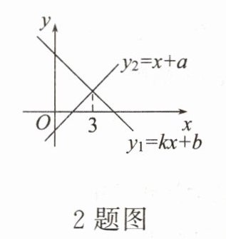 2.(3分·推理能力)如图是一次函数$y_1 = kx + b$与$y_2 = x + a$的图象,则下列结论:①$k<0$;②$a>0$;③$b>0$;④方程$kx + b = x + a$的解是$x = 3$,错误的个数是( )