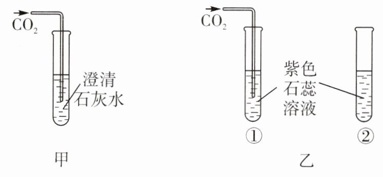 (2)乙中,将二氧化碳气体通入试管①内的紫色石蕊试液中,观察到的现象是______;试管②在实验过程中的作用是______。