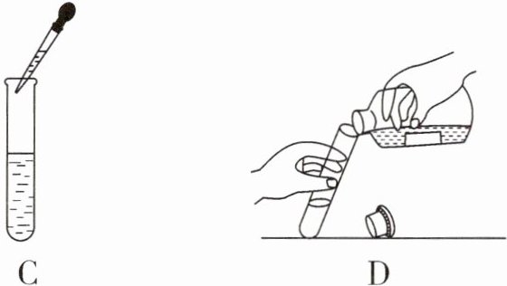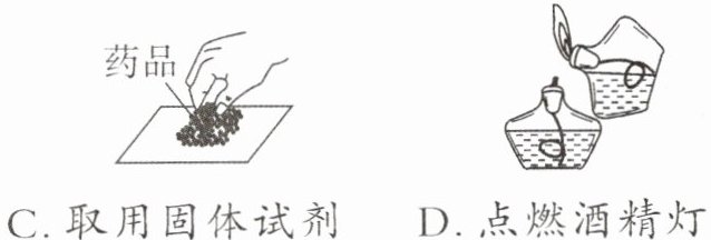 B [解析]取用药品时,要把瓶盖拿下倒放在桌子上,防止药品腐蚀桌面或被污染,A错误;向试管中添加粉末状药品时一般借助纸槽,B正确;给试管内的固体加热时试管要略向下倾斜,C错误;熄灭酒精灯时要用灯帽盖灭而不能用嘴吹,D错误。