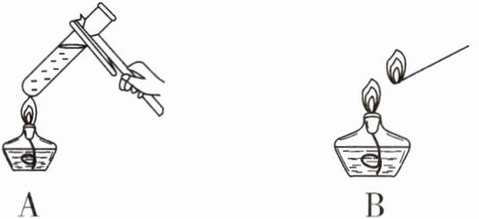 B [解析]加热试管中的液体时,用酒精灯的外焰加热试管里的液体,且液体体积不能超过试管容积的$\frac{1}{3}$,试管夹夹持在距试管口$\frac{1}{3}$处,A错误;点燃酒精灯要用火柴点燃,禁止用燃着的酒精灯引燃另一酒精灯,B正确;使用胶头滴管滴加少量液体时,注意胶头滴管不能伸入试管内或接触试管内壁,应垂直悬空在试管口正上方滴加液体,防止污染胶头滴管,C错误;向试管中倾倒液体药品时,瓶塞要倒放,标签要朝向手心,瓶口紧挨试管口,D错误。