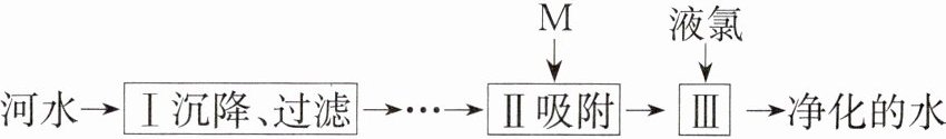 B [解析]过滤能除去不溶性固体杂质,故步骤Ⅰ可除去难溶性杂质,A正确;步骤Ⅲ加入液氯,可以杀菌、消毒,有新物质生成,属于化学变化,B错误;步骤Ⅱ是利用试剂M的吸附作用,试剂M可以是活性炭,C正确;纯净水是不含有杂质的水,经过这几步净化的水中含有可溶性杂质,仍是混合物,D正确。