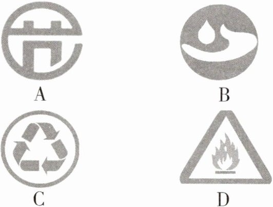 (3)A是节能标志,B是节水标志,C是回收标志,D是当心火灾标志,故选B。