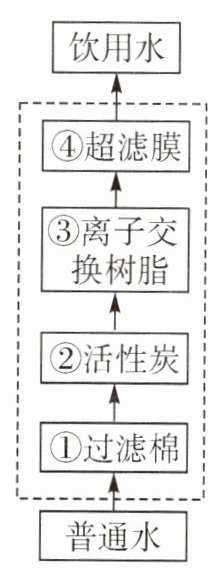 15 跨学科 生命吸管 “生命吸管”可直接将污水净化为饮用水,主要处理步骤与自来水的净化过程相似,如图所示:(③中离子交换树脂的主要作用是去除重金属离子、软化水质)