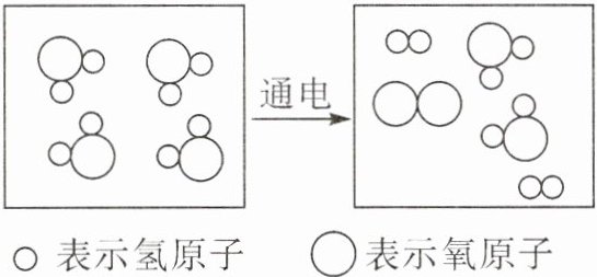 通直流电时,水分子被破坏,构成水分子的氢原子和氧原子分别重新结合形成氢分子和氧分子