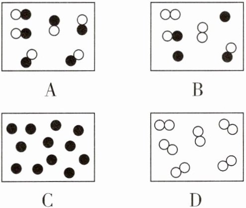 B [解析]由一种分子构成的物质属于纯净物,由两种元素组成的物质属于化合物,A错误;由两种分子和一种原子构成的物质属于混合物,B正确;由一种原子直接构成的物质属于纯净物,C错误;由一种分子构成的物质属于纯净物,由一种元素组成的物质属于单质,D错误。